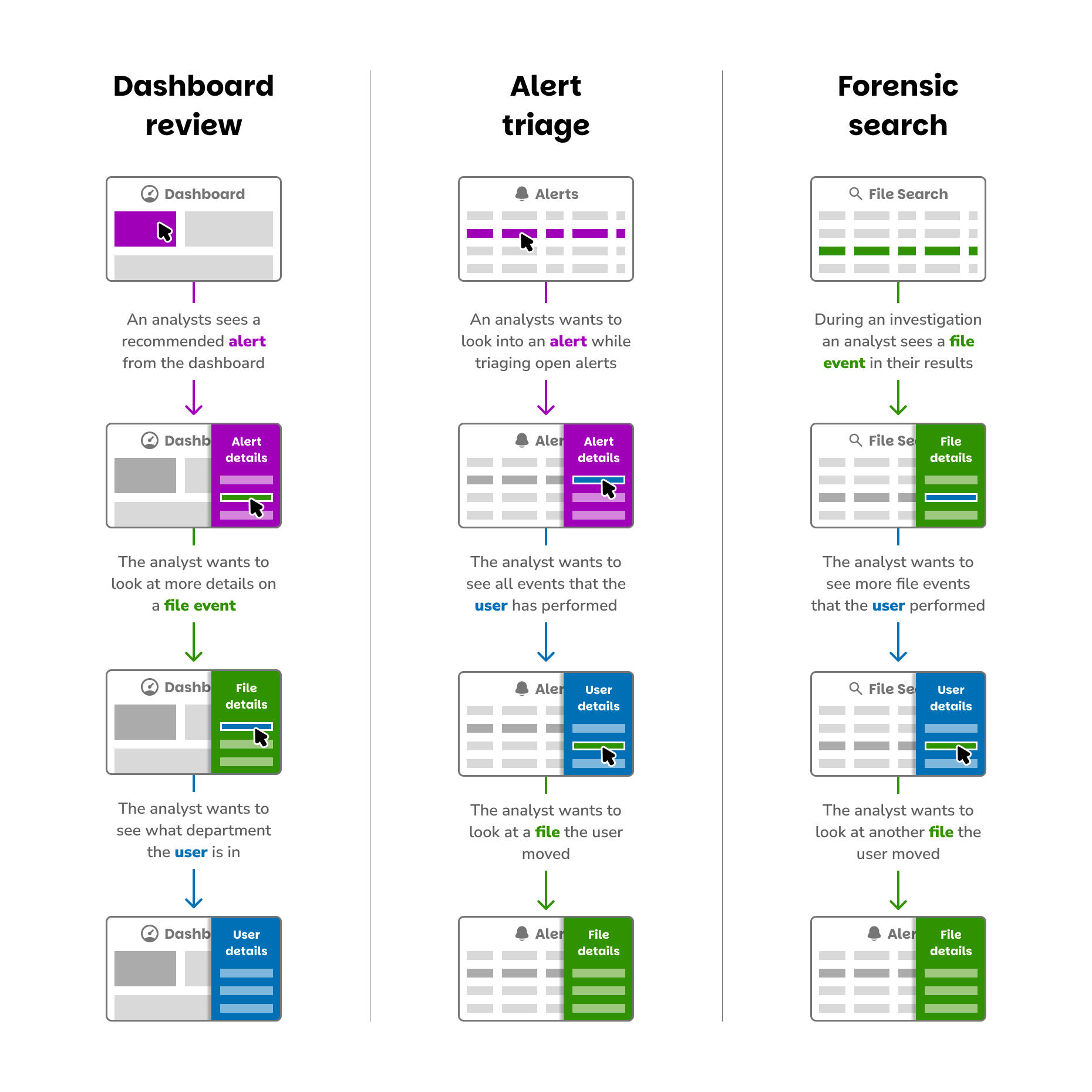 At Code42, the primary persona is a security analyst. A person with a specific skillset and very little time on their hands. This often made it difficult to get feedback, so I lead several efforts to ensure we were able to get the data we needed to make the best design decisions possible.